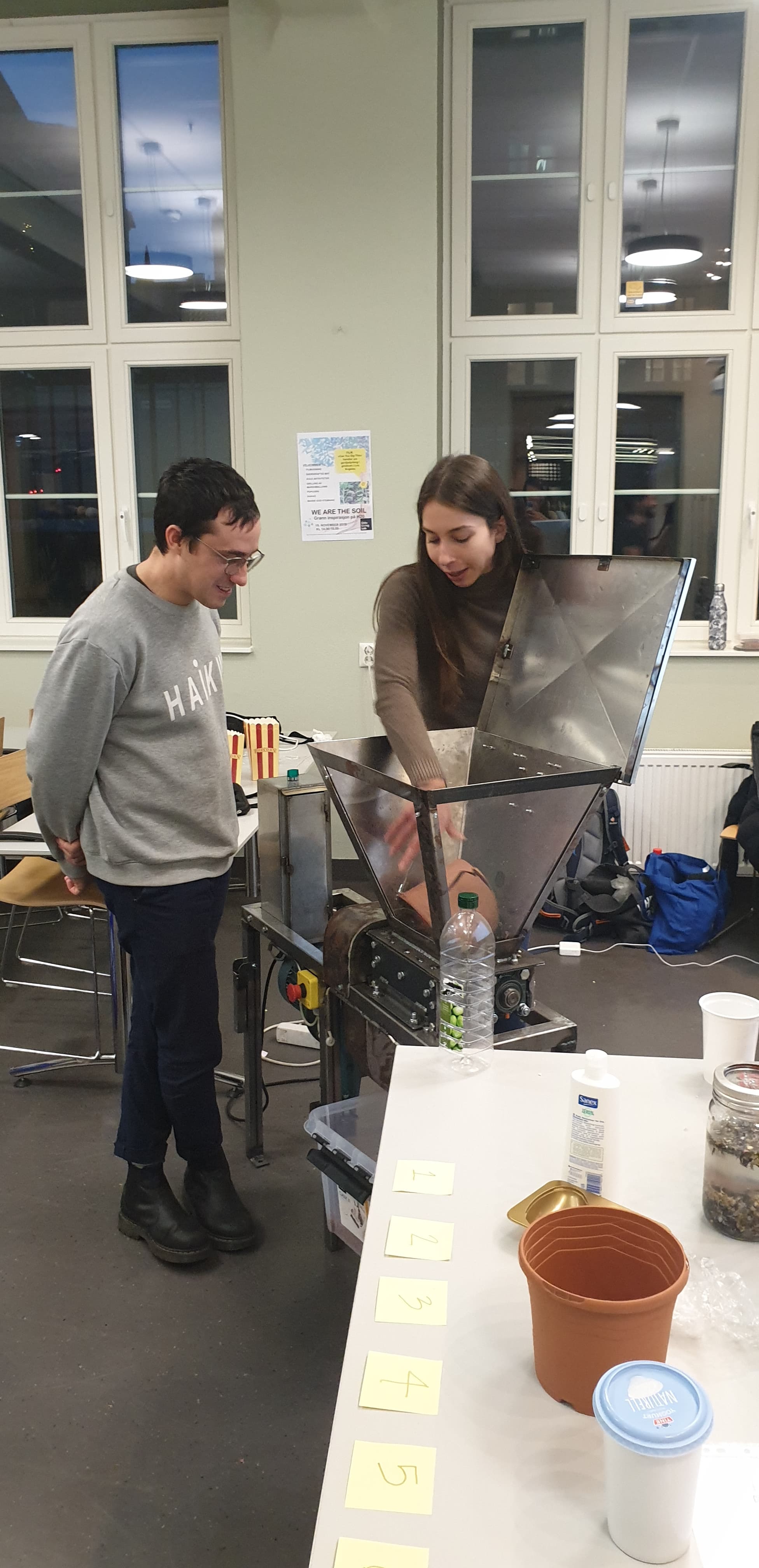 We participated in the Waste for Warmth project, which is a collaboration between Engineers Without Borders Norway, IFRC, Field Ready and The Polyfloss Factory. It's an initiative aimed at insulating refugee camp tents with recycled plastic, to get people through the cold winters. The insulation is made of 'Polyfloss', which is a type of fiber plastic made by carefully heating and spinning plastic waste in a rotating oven, a process similar to and inspired by cotton-candy production!